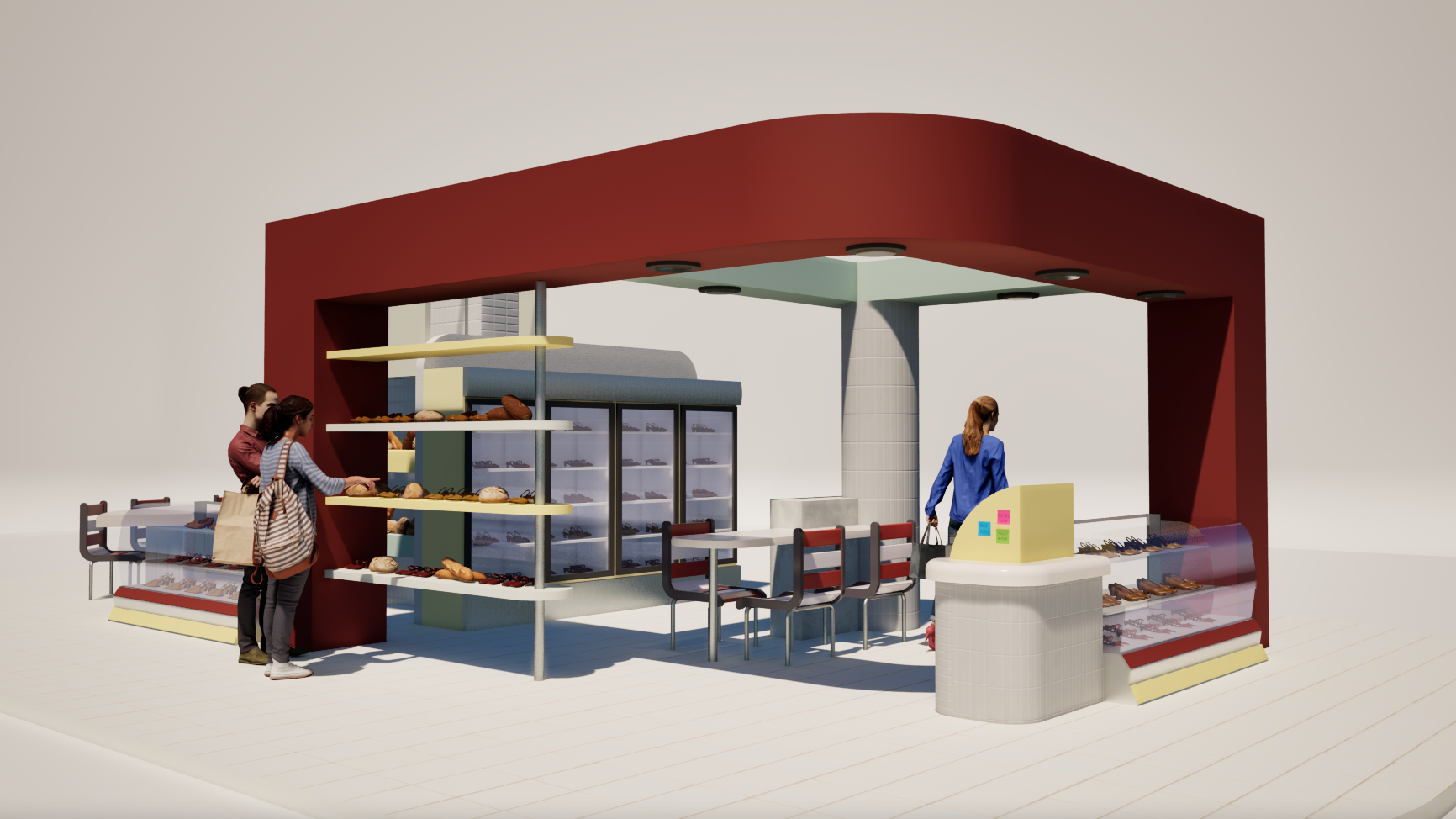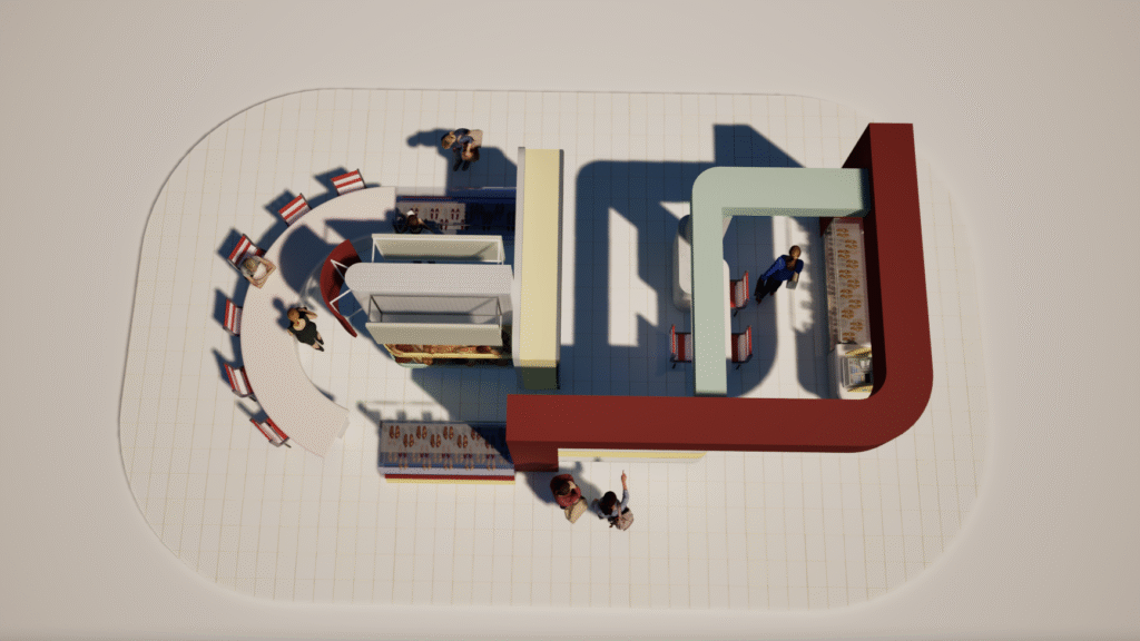 El pop up está concebido como una estrategia experiencial de marca, diseñada para guiar al usuario a través de un recorrido completo que fortalece su conexión con la identidad de la empresa. Su estructura permite incluir una colaboración con una marca de comida, integrando la tendencia actual de unir moda y gastronomía para generar una experiencia multisensorial.