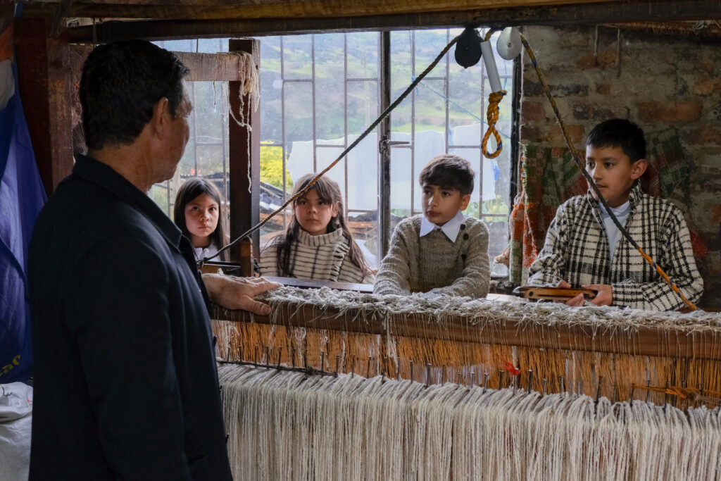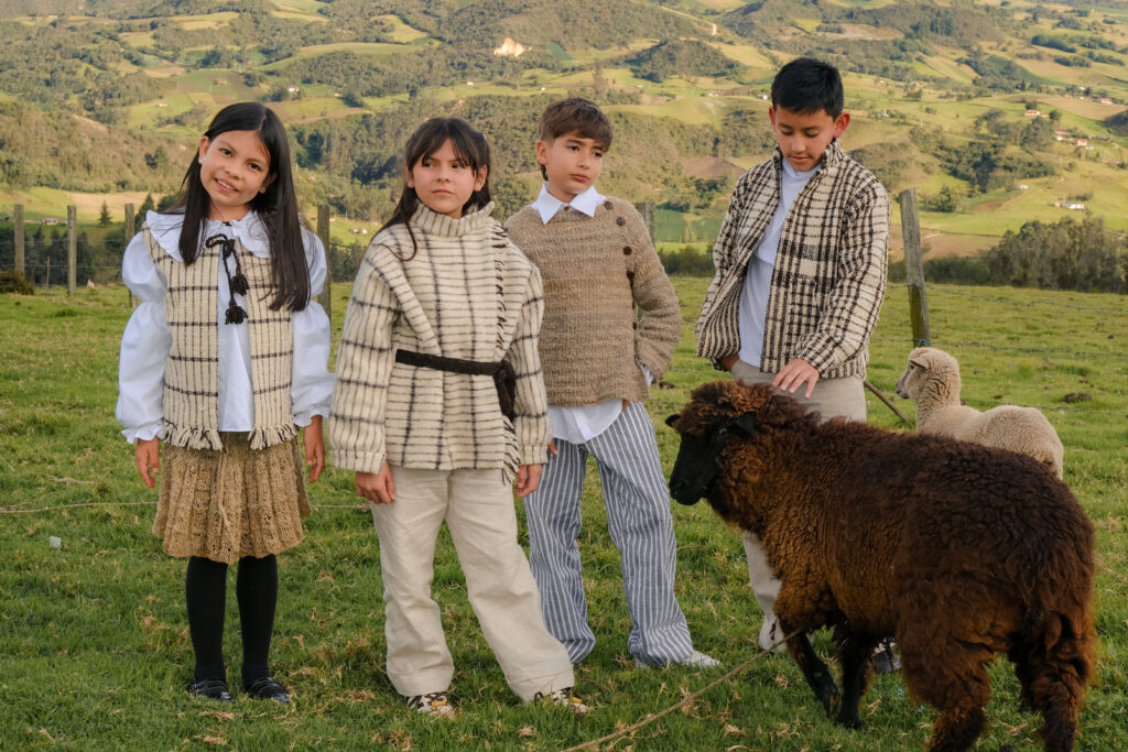 Cada colección nace del diálogo entre el diseño contemporáneo y las técnicas tradicionales de los artesanos de Villa Pinzón, quienes trabajan la lana de oveja criolla mediante procesos sostenibles. Con esta base, se desarrollan los tejidos y materiales que darán vida a las prendas.