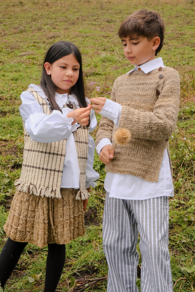 Posteriormente, se elaboran bocetos, muestras y prototipos, buscando equilibrio entre estética, funcionalidad y durabilidad. Finalmente, se realiza una curaduría de piezas que garantiza coherencia visual y fidelidad al universo emocional de la marca: prendas que transmiten calidez, sencillez y un vínculo auténtico con las raíces.