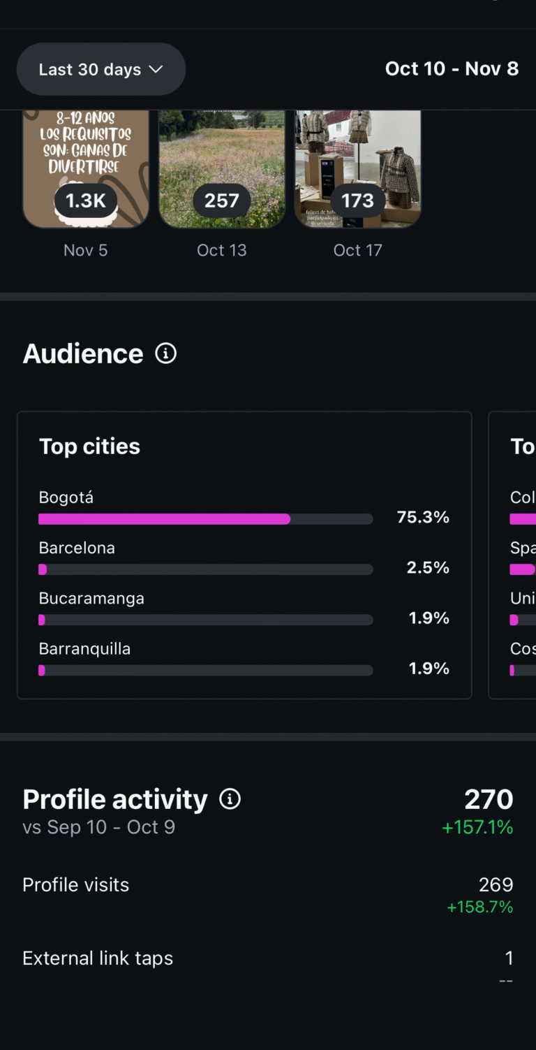 Analizar los insights ayuda a entender qué impulsa a los usuarios a visitar el perfil, la web o a comprar, mejorando tus resultados comerciales.